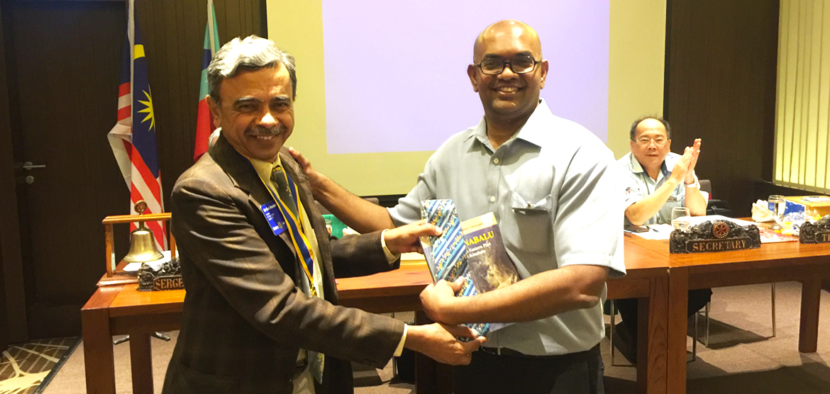 He gave a brief introduction to the anatomy, structure and functions of the kidneys and enumerated some of the common kidney diseases prevalent in Malaysia. Emphasizing on the common symptoms of kidney disease such as frothy urine akin to beer, swelling of the feet and puffiness of the eyes, he stressed on the fact that in early stages kidney disease could be virtually symptomless and would require simple and inexpensive blood and urine tests to be detected. The talk was well-attended by members and was followed by an interesting question-answer session. President Dr Ravi presented this year’s Rotary theme tie and Copy of his book on Mt Kinabalu – ‘East Kinabalu’, as a token of appreciation. Past President Dr Richard Barrow presented the vote of thanks.