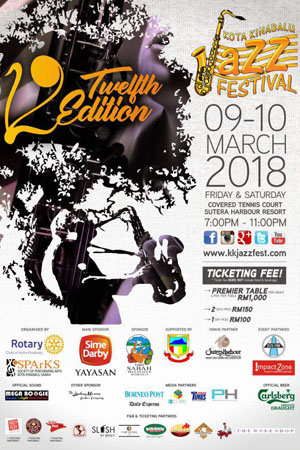 The 12th edition of Kota Kinabalu Jazz Festival was held on the 9 & 10 March, 2018. Money raised from ticket sales is used to fund various community projects of Rotary Club of Kota Kinabalu. The KKJF 2018 featured well-known singers Sybil Thomas and Rozella, Italian group Mezzotono, local groups Jumero, Shangri-La, The Esthers, Alu Alu Project, Albino Deers, The Movement and finger style guitarists Christopher Alban and Andrew Ngew. TV personality Daphne Iking was the MC.