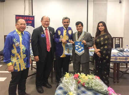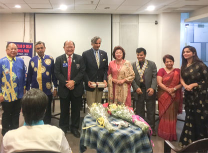 On the 28th of February we visited the Rotary Club of Delhi Panchshila Park. President Subhash C Khanna of the host Club and President Ravi of RC Kota Kinabalu jointly presided the meeting that started with the singing of the national anthem of India and Malaysia. The meeting was also graced by the District Governor of D3011 DG Ravi Chaudhary. President Ravi made a PowerPoint presentation that covered a brief description of Sabah and the projects and activities of RC Kota Kinabalu. The talk was followed by a sumptuous Indian dinner and fellowship. Rotarians of both clubs exchanged gifts. The occasion also presented an opportunity for three members of the Inner Wheel Club of Kota Kinabalu to meet their counterparts in Delhi.