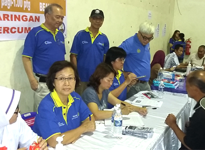 The First Cataract Camp in Beaufort District was held on Sunday, 10 Sep 2017 at Dewan Pak Musa, Beaufort. The camp was jointly organized by Rotary Club of Kota Kinabalu and Hospital Beaufort. Team of Rotarians led by Chairman Paul Thien and President Ravi and consisting of PP Robert Lai, Rotarians Alvin Chong, Rotarians Benjamin Lo, PP Tony Siaw and PP George Ng as well as spouses Jacinta, Margaret and Jenny went to Beaufort to organize the Camp. Beaufort Hospital Director Dr. Sutharsan Kannan and Optometrist Ruby Wong with support staff provided local support. Based on registration 362 patients were screened, 131 were initially referred for further investigation and 97 confirmed to have cataract of varying severity. This is the first Cataract Camp to be funded by the Rotary Global Grant 1642940 and all the patients will get sponsorship of intra-ocular lenses.