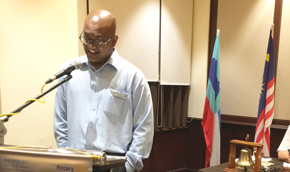 Rotary Club of Kota Kinabalu inducted a new member Dr. Bharathan Thevarajah on Monday, 18th September, 2017. Dr. Bharathan is a physician and nephrologist and works as a consultant in the KPJ Sabah Specialist Hospital. He was introduced to Rotary by President Dr Ravi Mandalam, who also works in the same hospital as Consultant Radiologist. Chairman of Membership Committee PP Patrick Chin announced the classification of the new member. President Ravi read the charge of induction, pinned the membership badge and presented the new member the certificate of membership. Members welcomed Dr Bharathan into our Club.